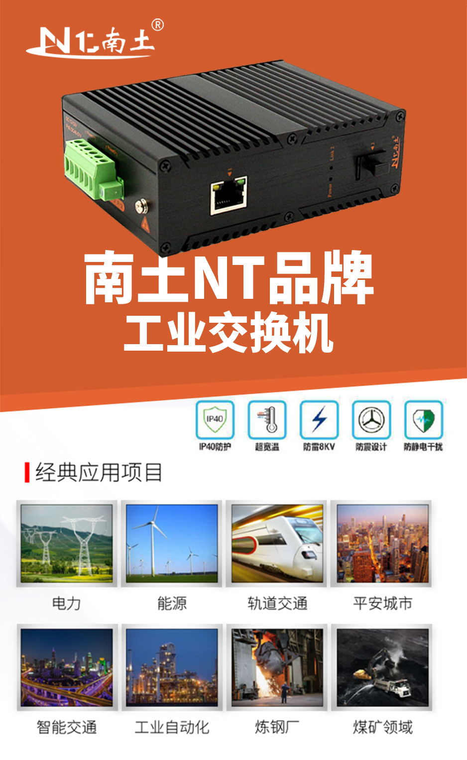 工業級(NT品牌)非網管1百光2百電,SFP接口,導軌式-DC12~52V供電-寬溫(-40℃-85℃)。默認不含AC電源適配器和不含光模塊。 |