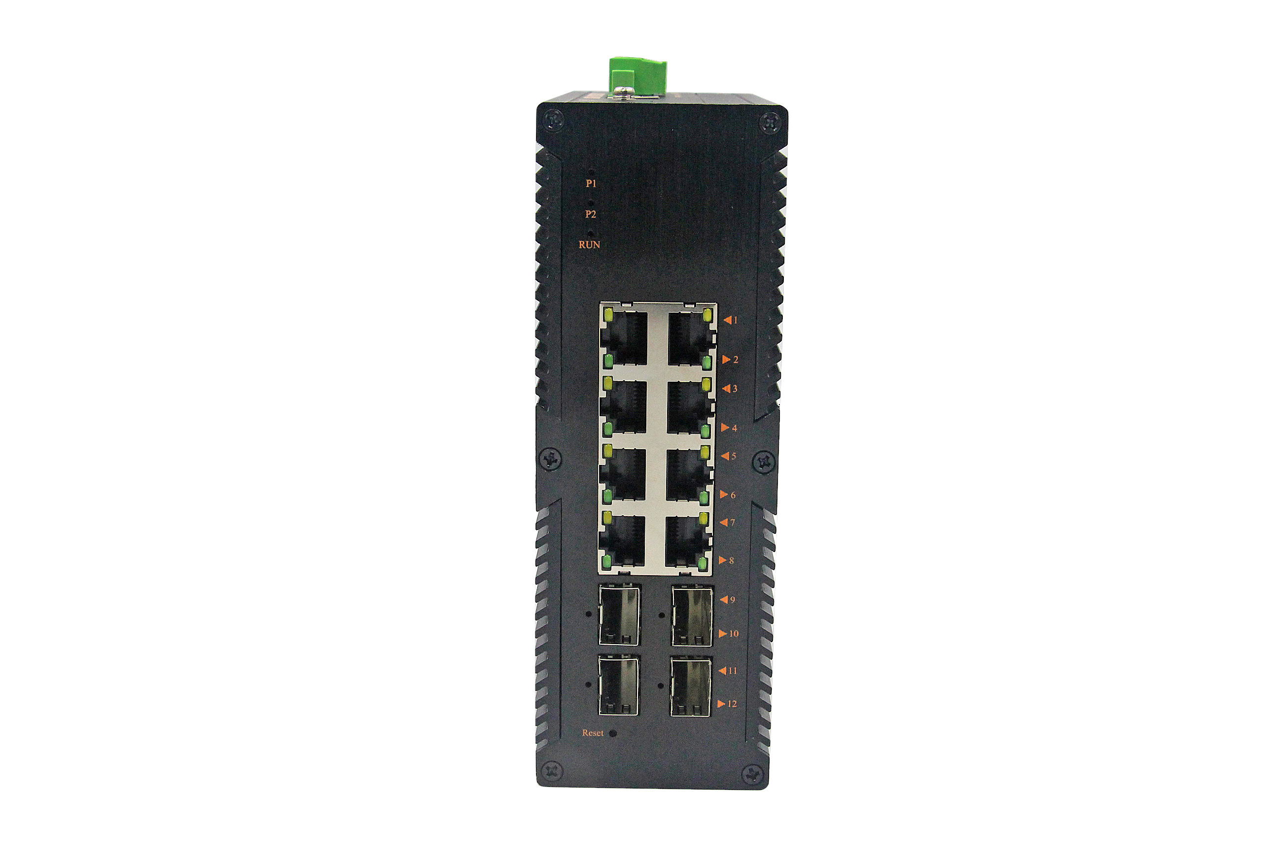 4個千兆光+8個千兆自適應電口、SFP接口、DC12-52V供電 |