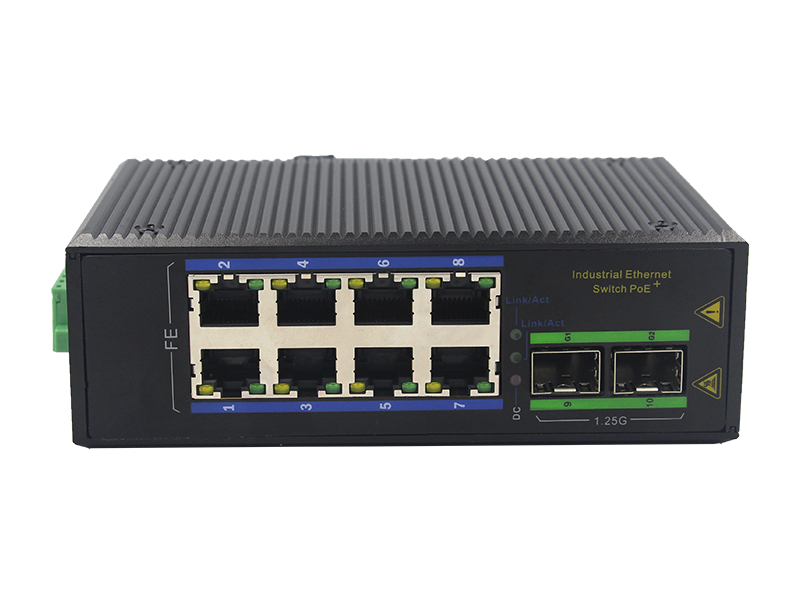 8路百兆POE電口+2路千兆FX光口工業級以太網POE交換機 |